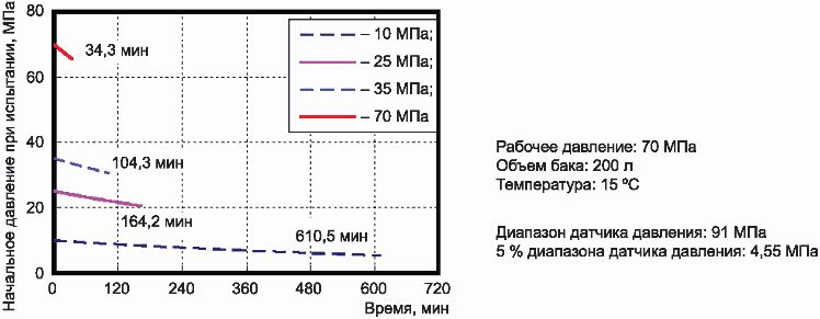 В качестве подтверждения того, что магистраль подачи водорода не была повреждена во время имитации отъезда, магистраль подачи водорода проверяют на наличие утечек с использованием критерия скорости утечки в 3,6 мл/мин, поскольку он соответствует наименьшей утечке, способной поддерживать пламя.