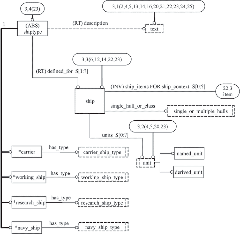 5.2. Определения и фрагменты языка EXPRESS, представленные в интегрированных ресурсах для конструкций, используемых в ПИМ, могут включать элементы списка выбора и подтипы, которые не импортируются в ПИМ. Расширенный листинг, приведенный в