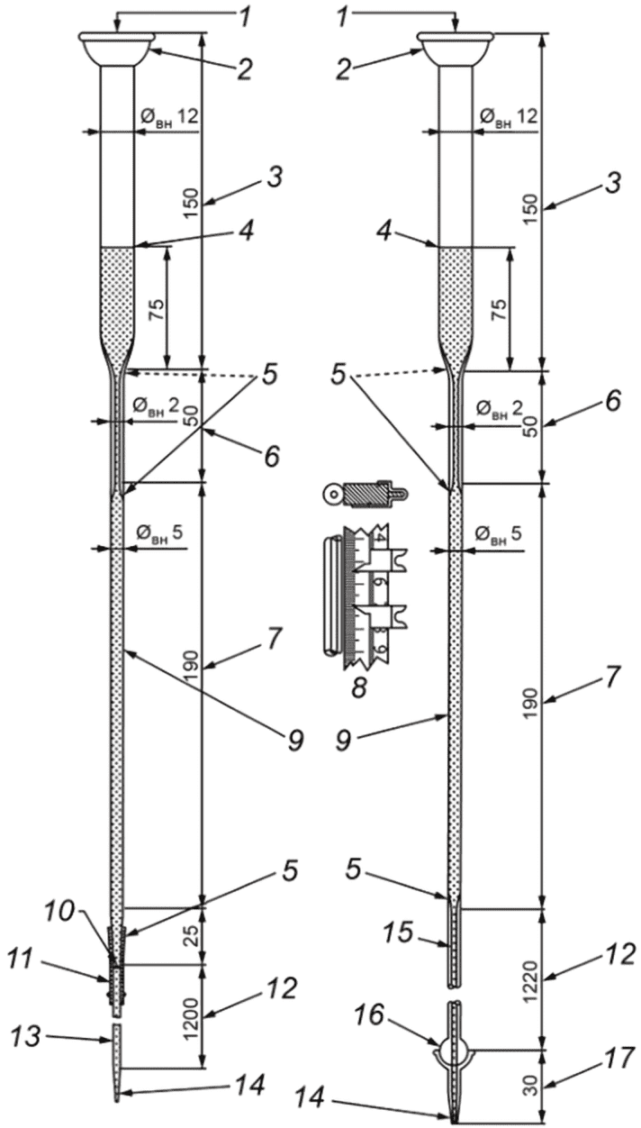 (необязательное); 9 - окрашенный силикагель; 10 - кончик