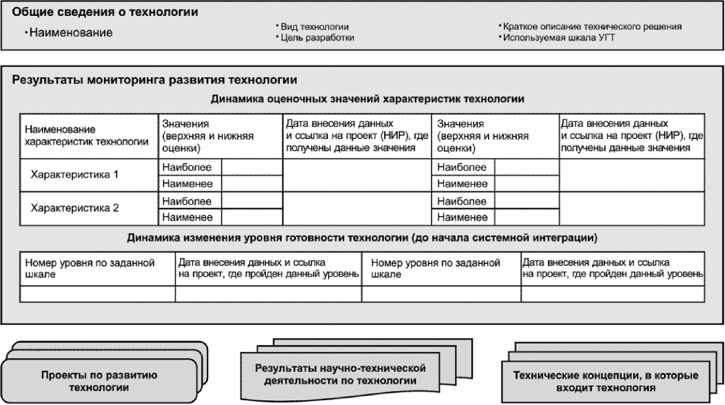 Перечень регистрируемых в паспорте характеристик технологии определяет разработчик технологии с учетом следующего требования: выбранный перечень характеристик должен быть достаточным для оценки влияния данной технологии на достижимость целевых характеристик ТК (их перечень устанавливают в долгосрочном прогнозе и стратегическом плане развития технологий в соответствии с