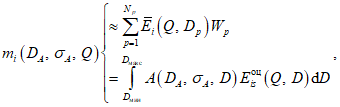 | - | относительное логарифмически нормальное распределение аэрозольных частиц по размерам с аэродинамическим диаметром, соответствующим медиане массового распределения частиц по размерам DA, и СГО, равным  , 1/мкм. |