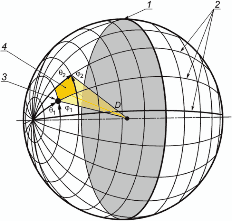 формулу (3), вычисляют эквивалентный телесный угол