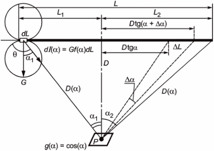 Энергетическую освещенность, формируемую линейной лампой в этой точке, вычисляют по формуле