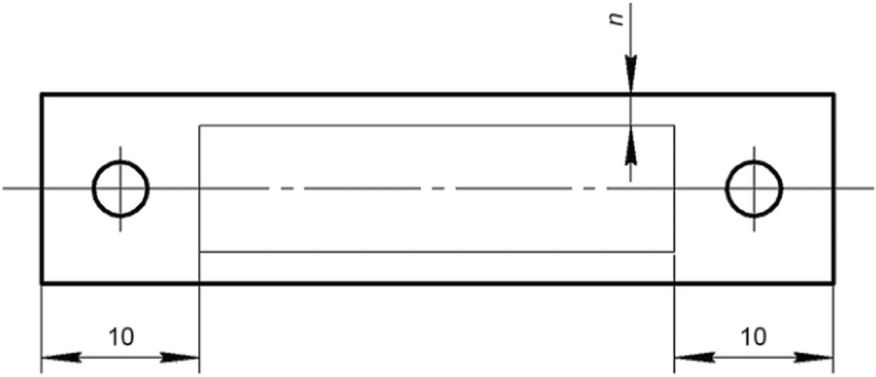 Планка типа 10 для маркировки электроустановочной арматуры и светильников типа 2 (из алюминиевого сплава толщиной 1 мм, с отверстием диаметром 6,6 мм):