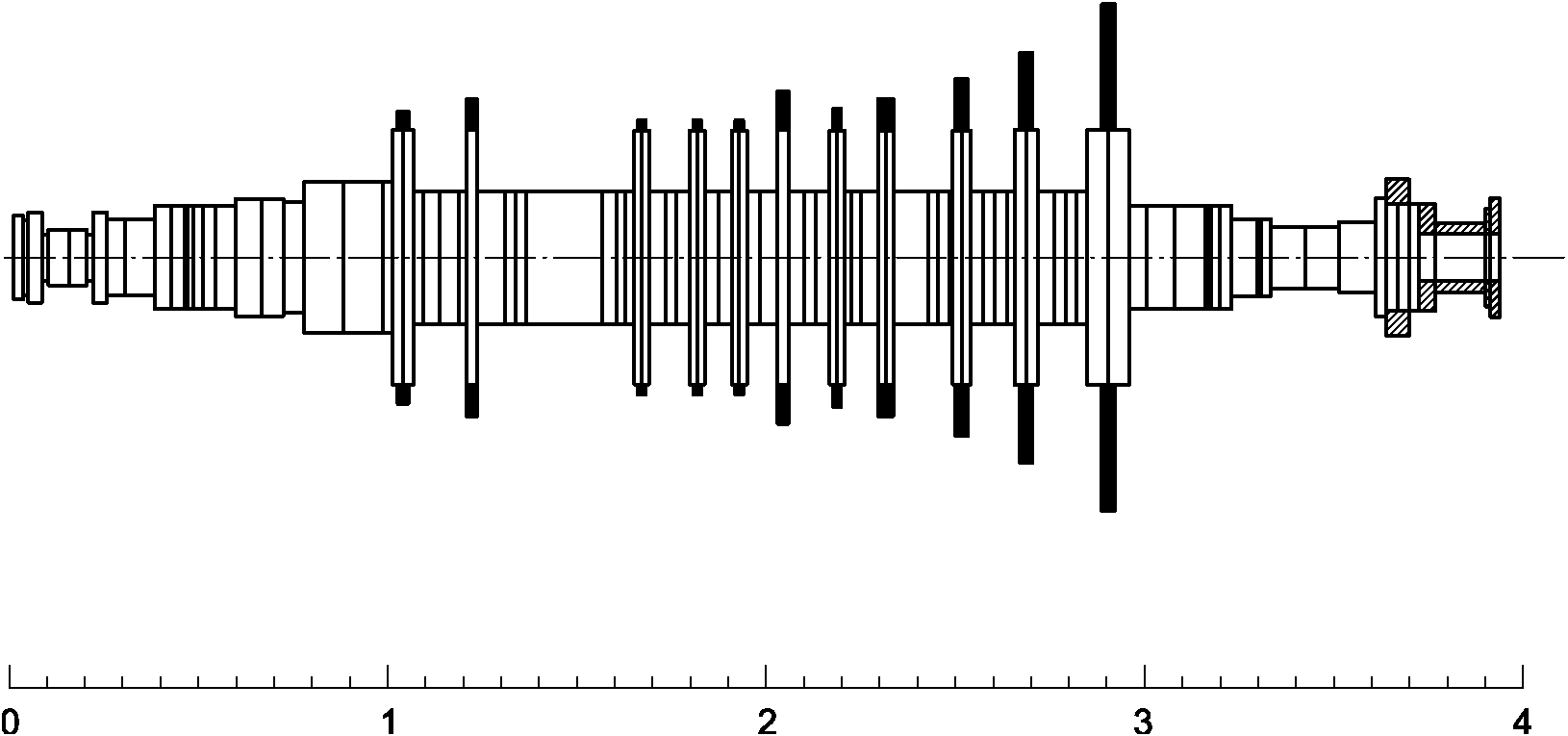 -1. Ввиду отсутствия динамической модели ротора было принято решение разработать ее на основе известных элементов турбины (см.