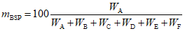 где WA, WB, WC, WD, WE и WF - массы компонентов A, B, C, D, E и F соответственно.