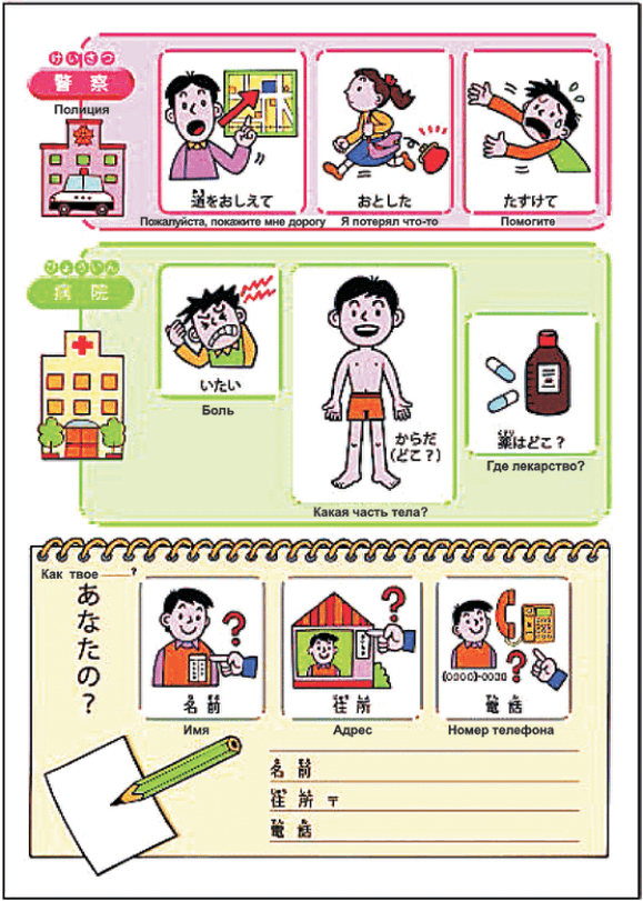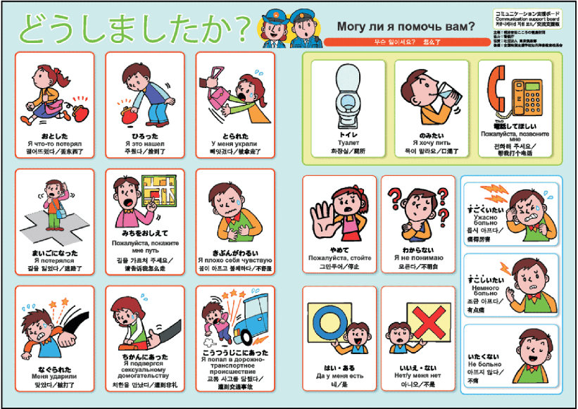[21] | Коммуникативная доска в полицейской версии, источник: Страховой фонд психогигиены Meiji Yasuda (Communication support board in police version, source: Meiji Yasuda Mental Health Foundation, 2008) |