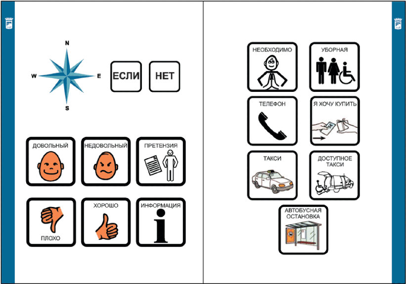 3) Графические символы, касающиеся безопасности и экстренной ситуации, имеют высокий приоритет и должны располагаться в самой верхней части коммуникативной доски.