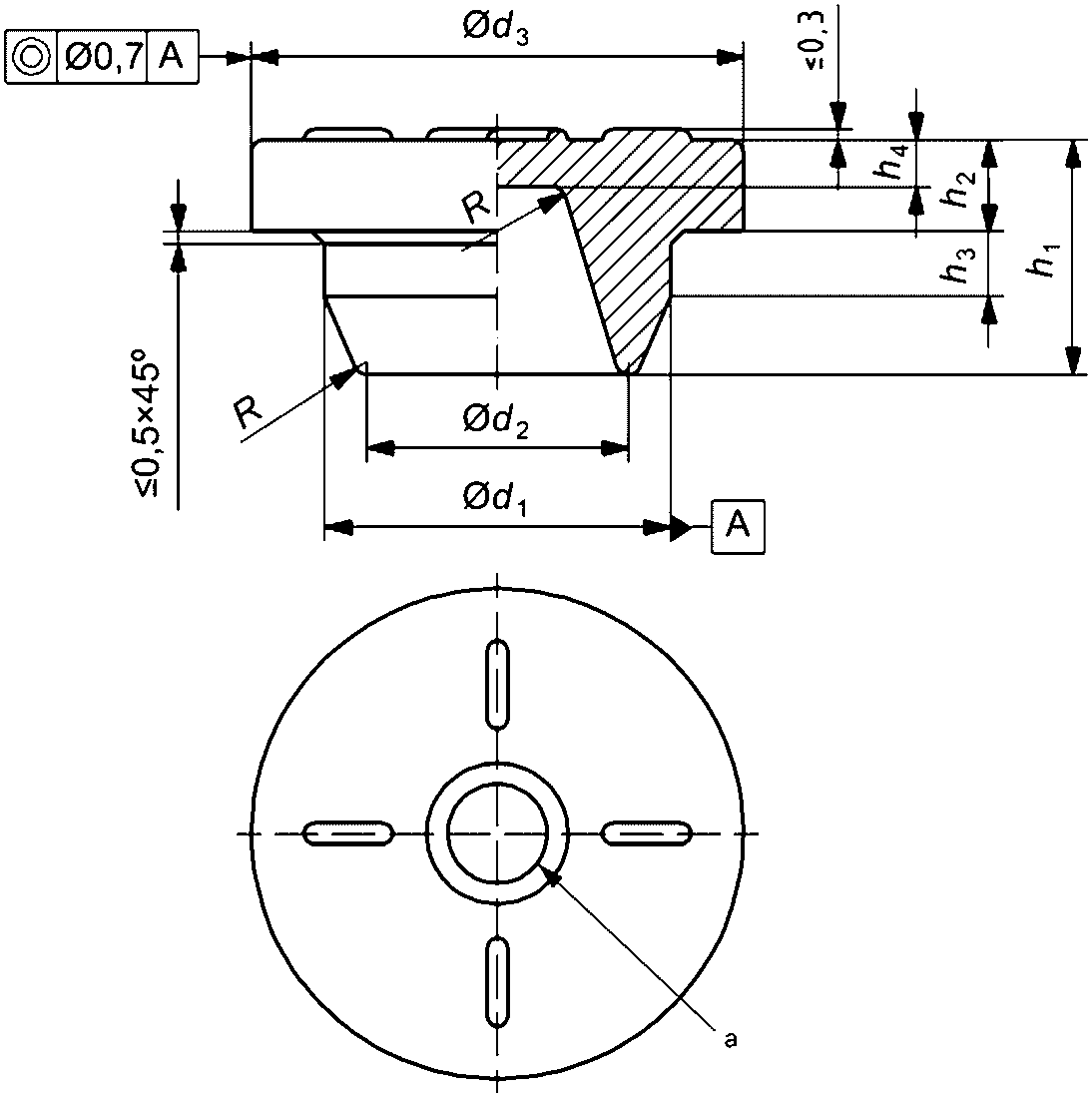 4.4 Если фланец пробки имеет конусообразную форму, скос может превышать общий диаметр не более чем на 0,3 мм, чтобы не усложнять производство. Допуски на обрезной край фланца должны соответствовать допускам, установленным в