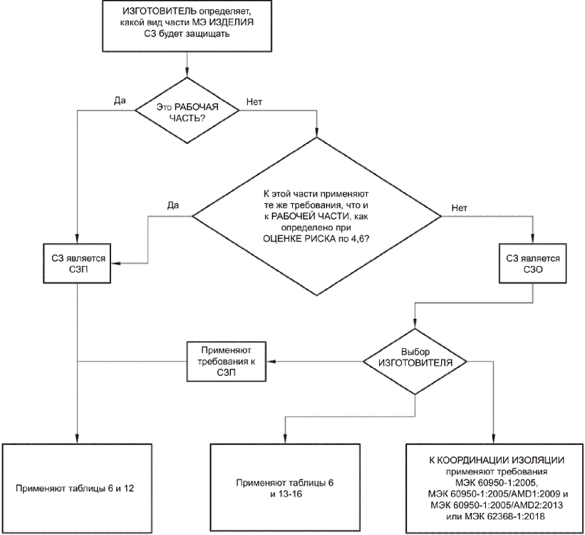 пункте 8 настоящего стандарта, включая многие таблицы, используемые для определения требований к СРЕДСТВАМ ЗАЩИТЫ, в первую очередь к СРЕДСТВАМ ЗАЩИТЫ ОПЕРАТОРА и КООРДИНАЦИИ ИЗОЛЯЦИИ. Требования, включенные путем ссылки, рассматриваются в Изменении 2. Взятые из МЭК 60950-1 требования будут рассмотрены в ходе разработки четвертой редакции этого документа.