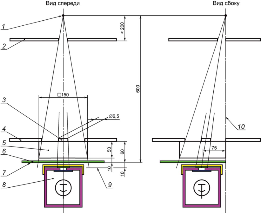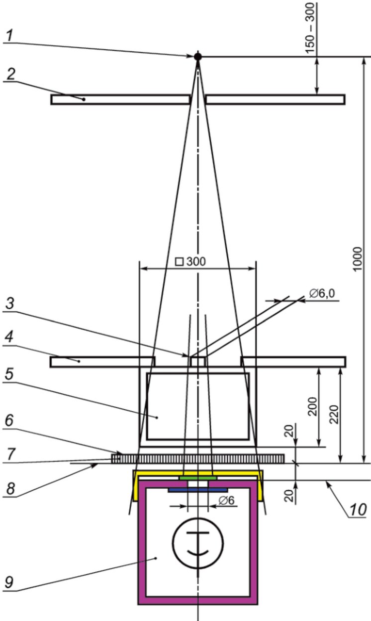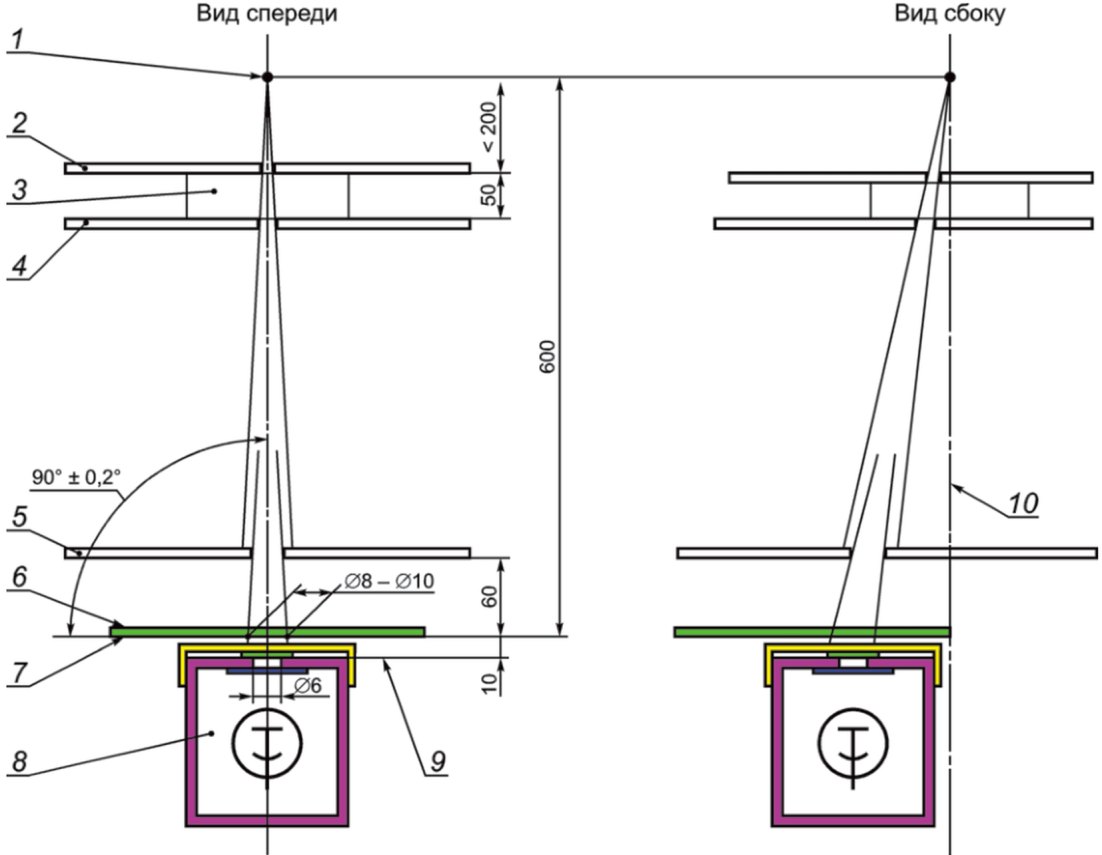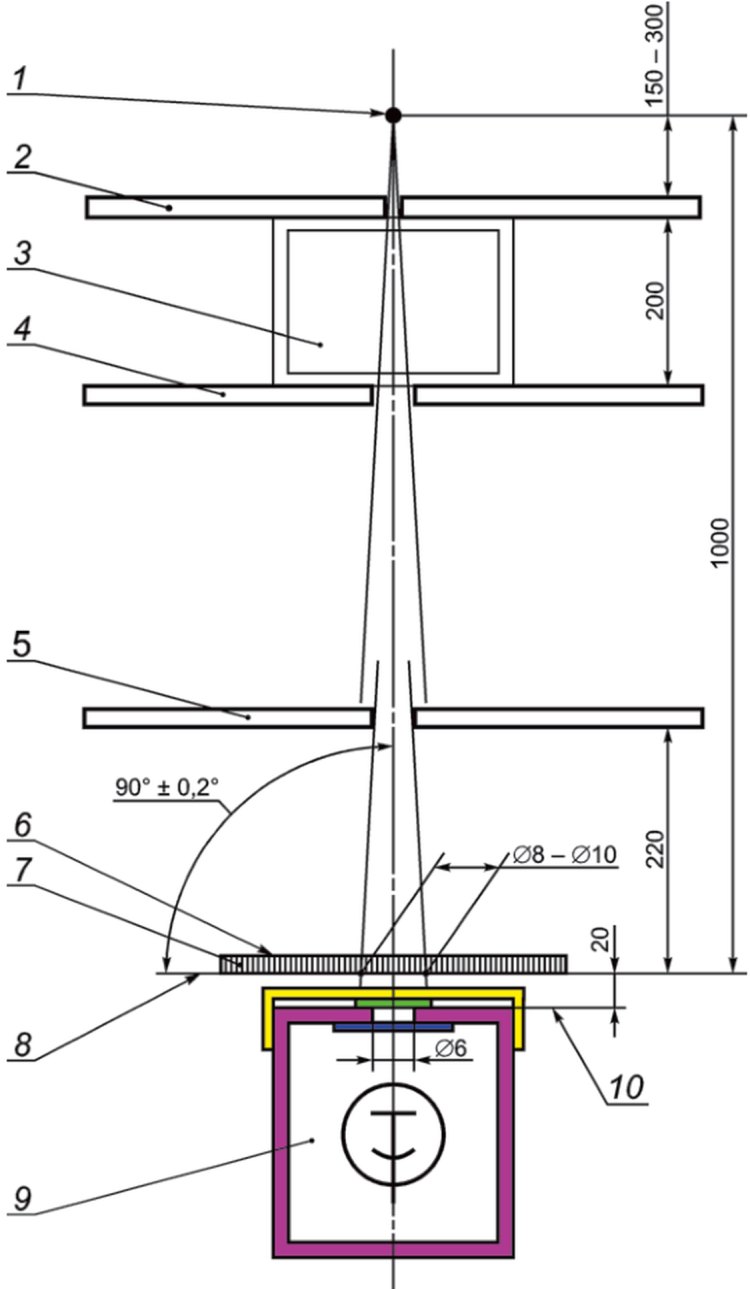 - допуски указаны для размеров в установках для измерений ПРОЗРАЧНОСТИ РАСТРА ДЛЯ ПЕРВИЧНОГО ИЗЛУЧЕНИЯ, ПРОЗРАЧНОСТИ РАСТРА ДЛЯ РАССЕЯННОГО ИЗЛУЧЕНИЯ и ПРОЗРАЧНОСТИ РАСТРА ДЛЯ СУММАРНОГО ИЗЛУЧЕНИЯ.