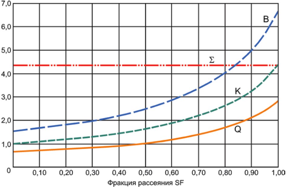 Графическое представление этих физических характеристик в зависимости от фракции рассеяния показано на