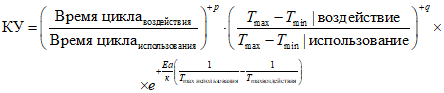 Примечание - В формулах настоящего раздела приведены следующие обозначения: X-воздействие > X-использование [где X = T, If, ES, относительная влажность (ОВ) или содержание влаги (СВ), Tmax - Tmin, время цикла], знак "+" всегда стоит перед мощностью и экспоненциальными показателями.