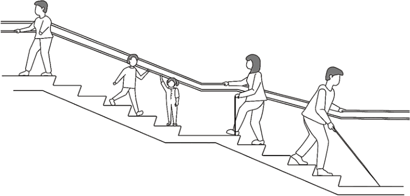 Слепому человеку горизонтальные завершения поручней помогают определить начало и конец лестницы