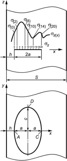 Г.2.3.4 Ниже приведен расчет КИН по контуру угловой (четверть эллиптической) трещины.