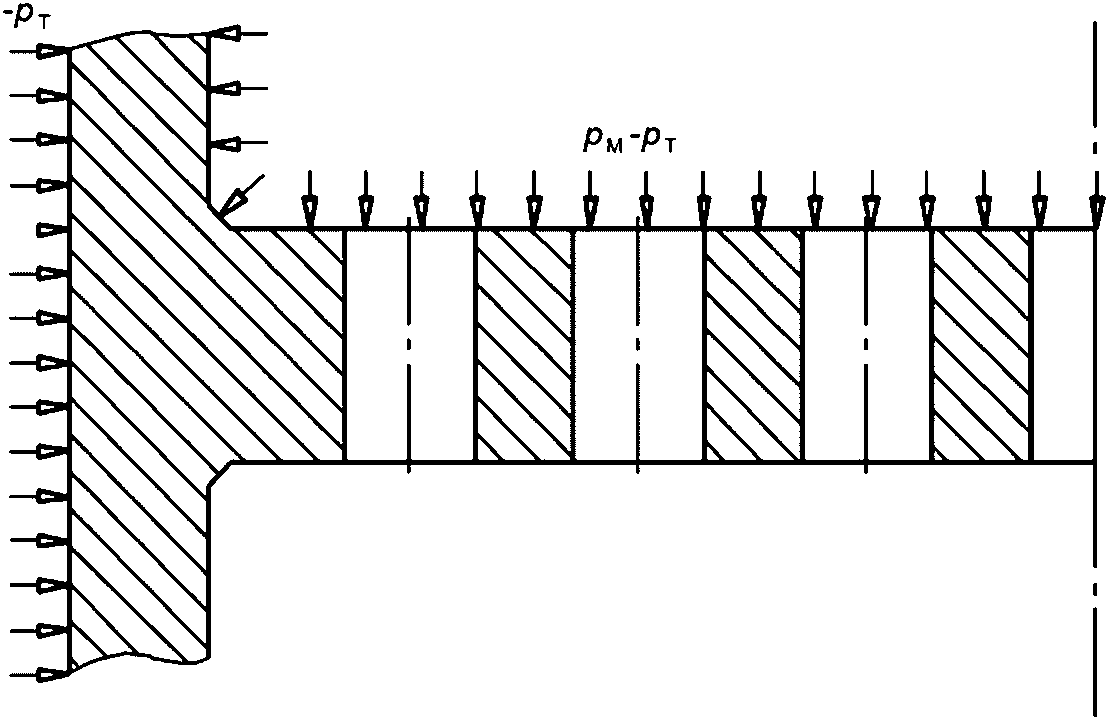 методику расчета НДС, приведенную в приложении А, учитывая только напряжения от нагружения расчетным давлением. Область применения методики указана в