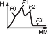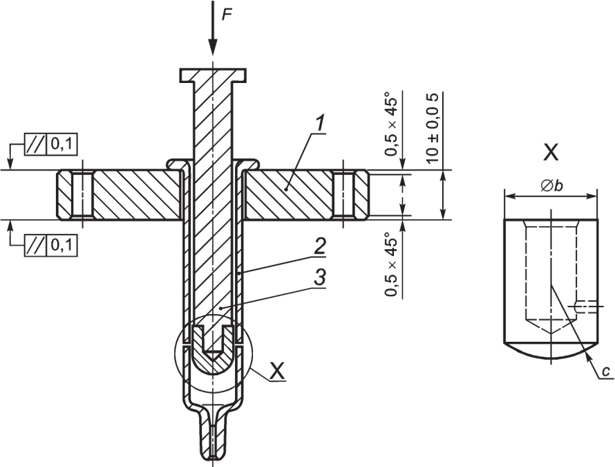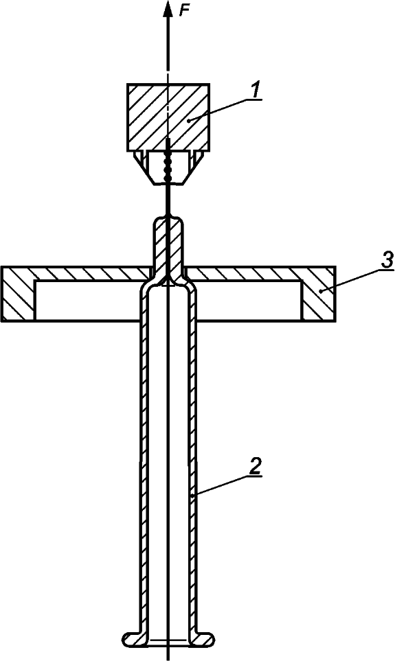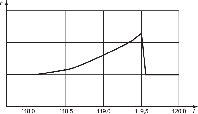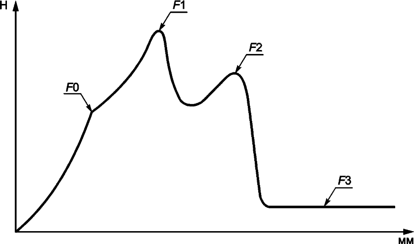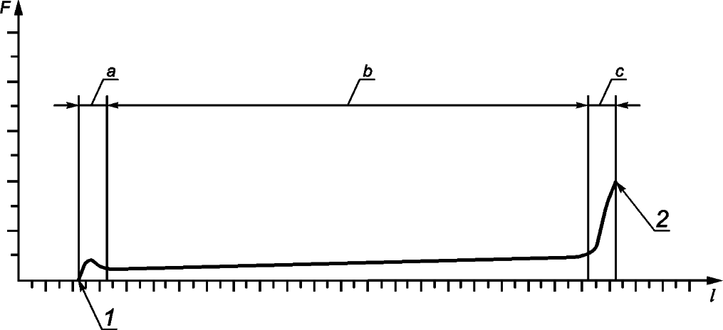 - среднее, минимальное и максимальное значения, зарегистрированные на кривой зависимости усилия от расстояния перемещения устройства растяжения, Н;