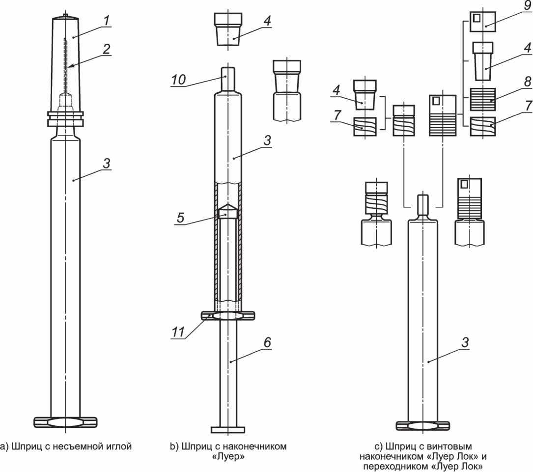 2 Цилиндр шприца может быть оснащен несъемной иглой.