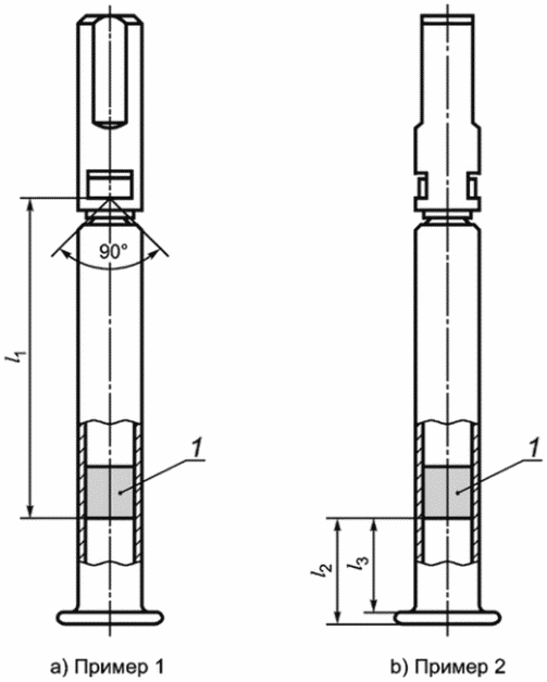 пункт G.2) Приложения G, при укупоренном наконечнике, обеспечивающим возможность проведения испытания на давление до его разрушения. Испытательное давление и критерии приемлемости определяют с учетом предполагаемого применения, а также параметров содержимого (например, использование в инъекционных устройствах с иглами или высокая вязкость содержимого предварительно наполненного шприца).