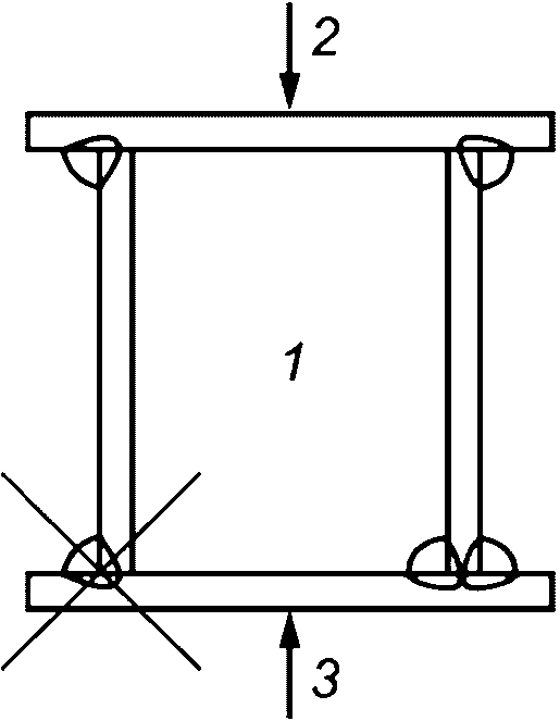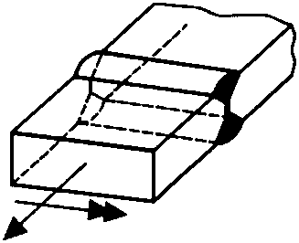<*> Следует использовать только нормальные напряжения диафрагм (без изгибов из-за эксцентриситета) в сварном профиле, преобразованные в поперечное сечение сварного шва для оценки. <**> Применяется к закрепленному лобовому шву (изгиб вокруг продольной оси шва конструктивно в значительной степени исключен), для незакрепленных швов следует учитывать изгибную нагрузку эксцентрикового соединения. |
