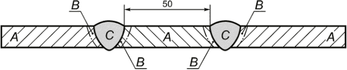 3.3.1 | | Листовая нахлестка с двумя угловыми швами | Угловой шов | | PT 10% | CP B CP C1 | 21 | Трещина при переходе от шва к основному металлу |
