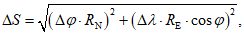 RE - радиус кривизны сечения по параллели, вычисляемый по формуле