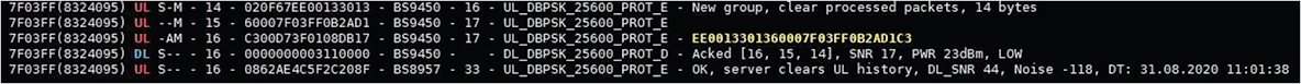 UPLINK-пакет представляет собой модулированные последовательности двоичных данных, сгруппированных в байты.