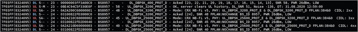 2) базовые станции, осуществляющие прием, обработку и передачу сообщений от устройств (UPLINK-пакеты) на сервер NB-Fi, а также отправку нисходящих сообщений на устройства (DOWNLINK-пакеты);