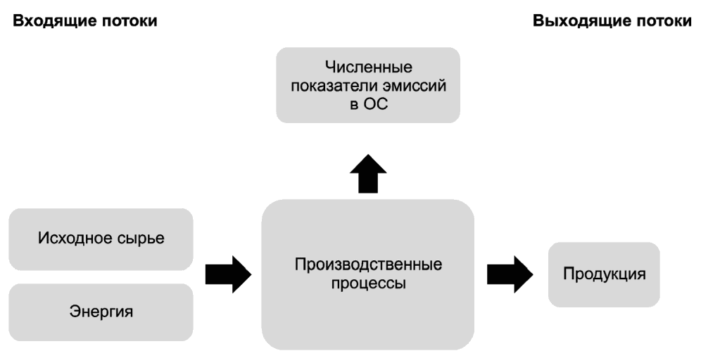 9.1 Один из этапов проведения "зеленого" ситуационного исследования и представления результатов заключается в разработке графической схемы, отражающей входящие и выходящие потоки вещества и энергии в производственных процессах предприятия и показатели эмиссий в ОС, сопровождающих эти процессы.