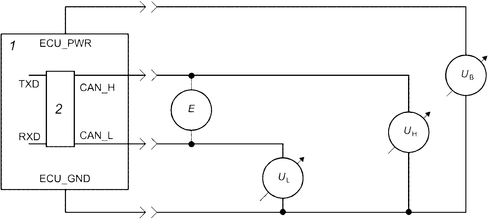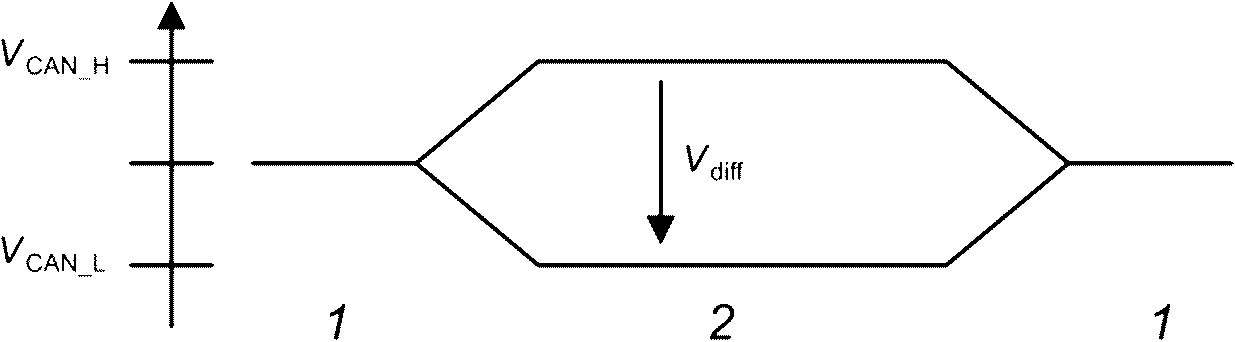 Напряжения CAN_H и CAN_L относительно ECU_GND каждого ECU обозначаются VCAN_H и VCAN_L. Дифференциальное напряжение