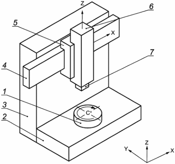 1 | шпиндель для крепления обрабатываемой заготовки (стол для крепления обрабатываемой заготовки), C' | workholding spindle (workholding table), C' | broche (plateau tournant), C' |