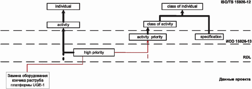 Согласно содержащемуся в ИСО 15926-2 определению, представленная объектом деятельность - это нечто, случающееся независимо от размера и сложности. В перерабатывающей промышленности термин "деятельность" часто используется для обозначения того, что меньше проекта, но больше задачи. Для того чтобы избежать путаницы с данным в ИСО 15926-2 определением представляющего деятельность объекта activity, здесь используется термин "деятельность в проекте" (activity in project).
