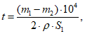 где m - масса покрытия, нанесенного на единицу площади поверхности образца с двух сторон, г/м2;