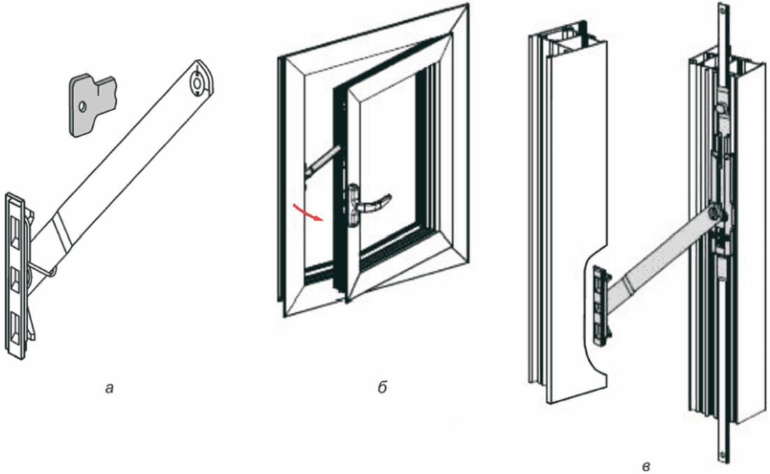 Рисунок Б.13 - Пример установки фрамужного механизма