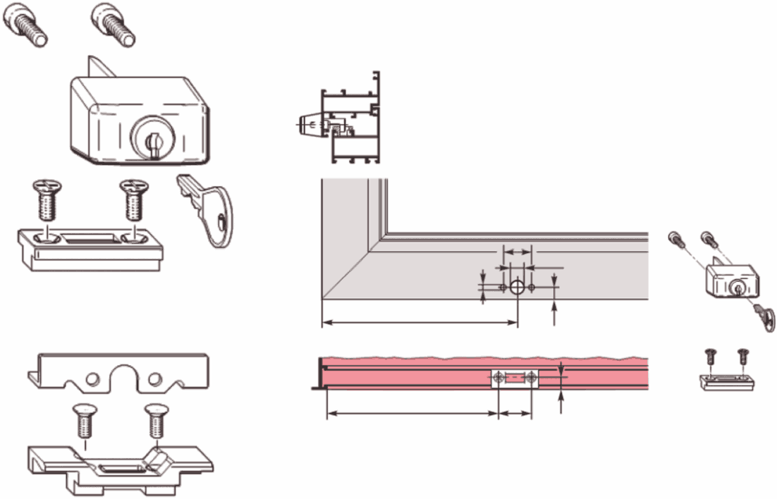 1 - накладка под оконную ручку; 2 - блокировочные пластины