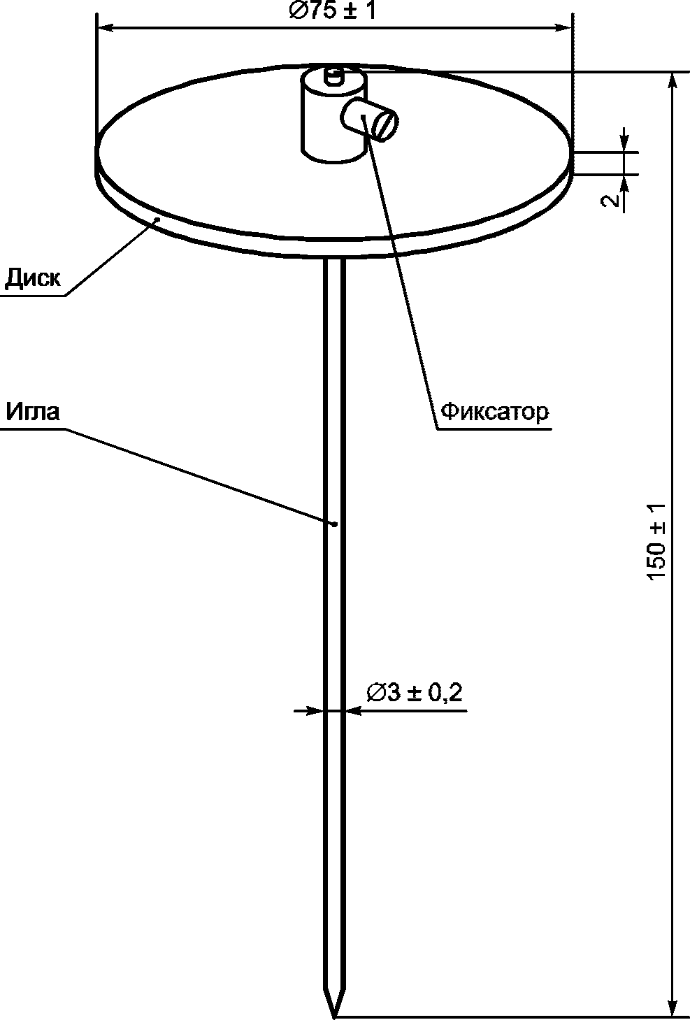 А.1 Для измерения толщины теплоизоляционных волокнистых изделий из волокна, изготовленного центробежным методом, рекомендуется применять толщиномер, соответствующий рисунку А.1.