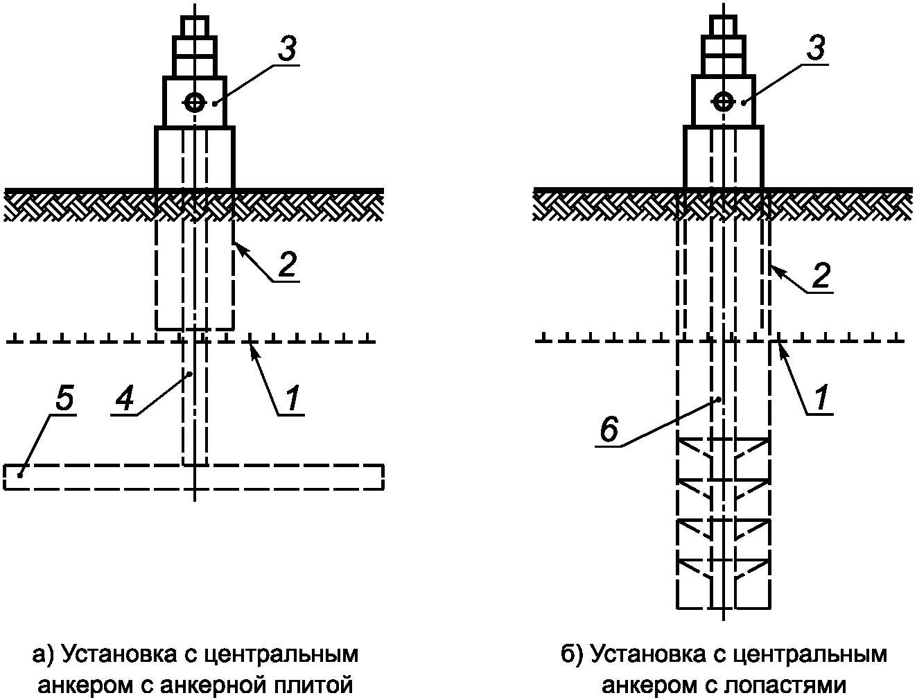 4 - анкерная тяга; 5 - анкерная плита; 6 - анкерная тяга