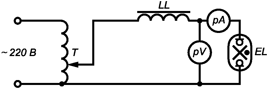 Для приборов, подключенных последовательно с лампой, полное сопротивление должно быть таким достаточно низким, чтобы падение напряжения не превышало 2% расчетного напряжения на лампе.
