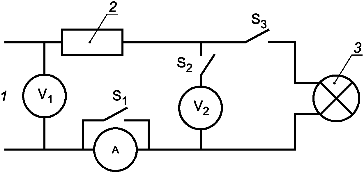 При измерении мощности лампы цепь вольтметра, измеряющего напряжение лампы, должна быть разомкнута, а амперметр закорочен, при необходимости. Поправку на потребление мощности ваттметром не делают, т.к. цепь присоединена на ламповой стороне цепи, измеряющей ток.