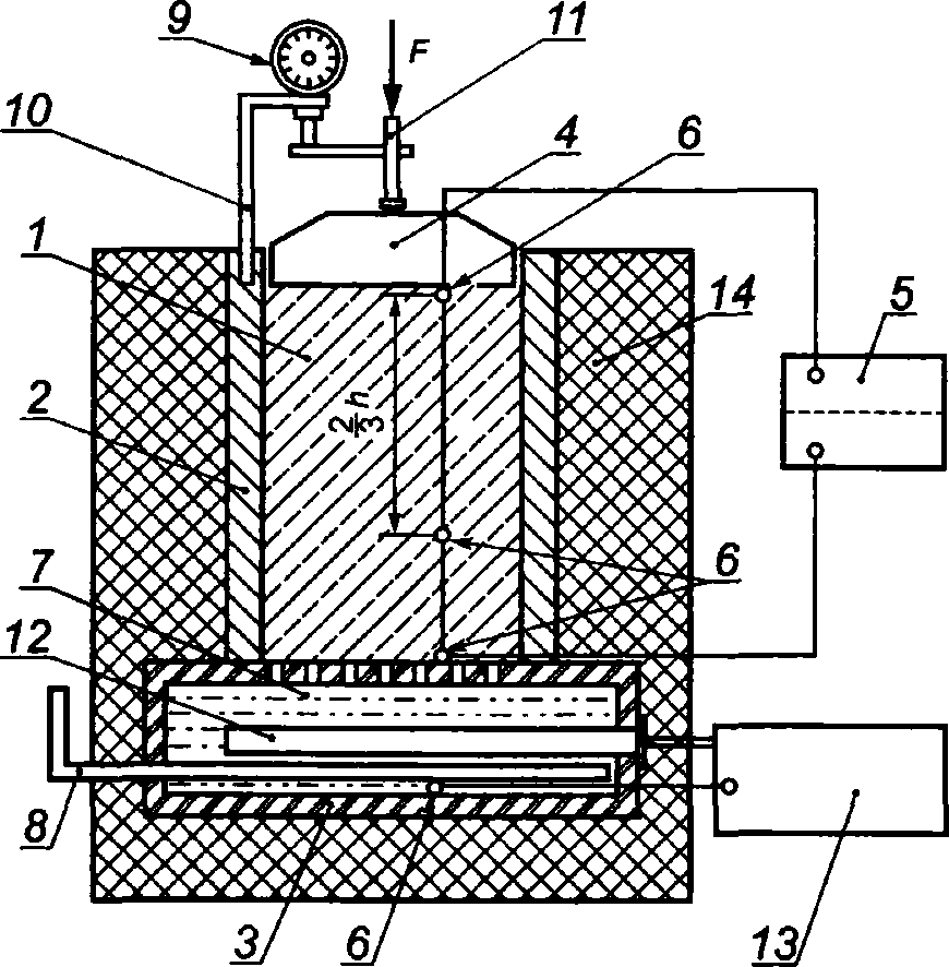 - емкость с водой, заполненная капиллярно-пористым материалом, или система подачи воды к образцу со стороны "теплого" торца;