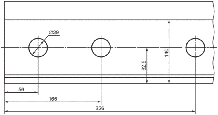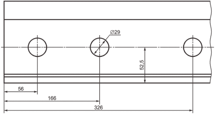 расстояние от центра каждого отверстия до торца рельса | +/- 2,0 | +/- 0,5 |