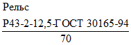 Рельс типа Р43 с болтовыми отверстиями на двух концах длиной 12,5 м из стали марки 70 | |