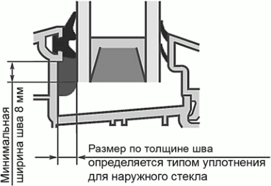 К.7.2 Во избежание повреждения вторичного герметика стеклопакета под действием механических нагрузок высота вторичного слоя герметика должна быть увеличена не менее чем на 1 мм.