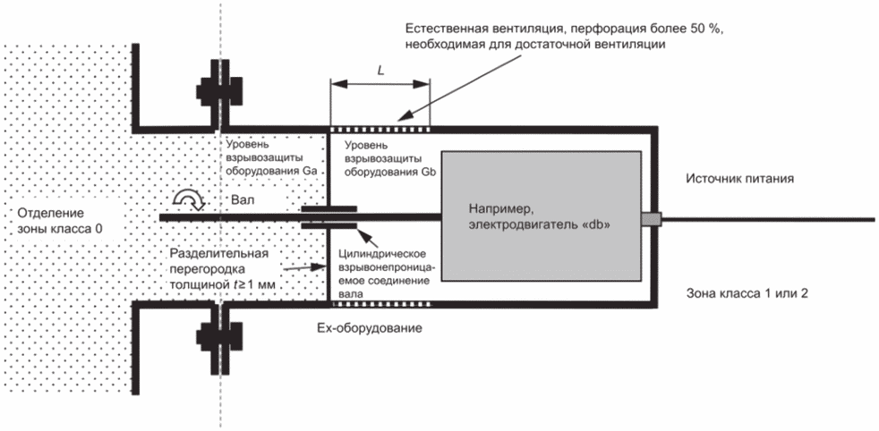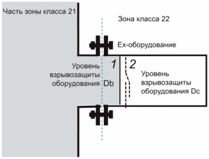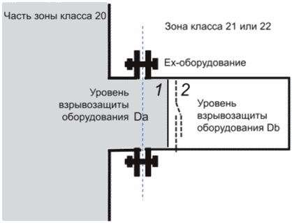Если оборудование предназначено для встраивания в перегородку (стену), разделяющую взрывоопасные зоны разных классов, и не выполняются требования