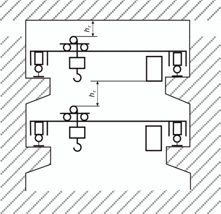 hг от наивысшей точки крана до потолка здания, до нижнего пояса стропильных ферм или до предметов, прикрепленных к ним, а также до нижней точки другого крана, работающего ярусом выше, должно быть не менее 100 мм (см.