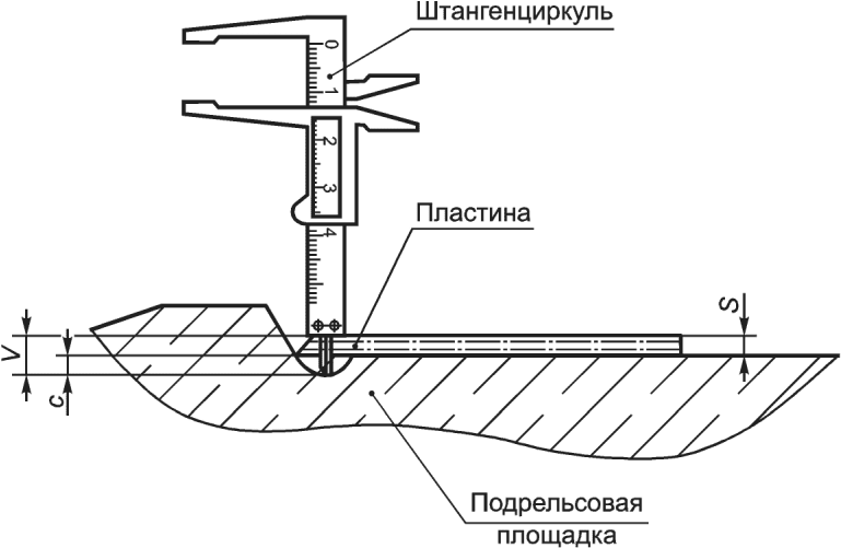 7.17 Глубину заложения дюбеля в брусе относительно уровня подрельсовой площадки контролируют штангенциркулем с глубиномером по ГОСТ 166-89 (ИСО 3599-76)