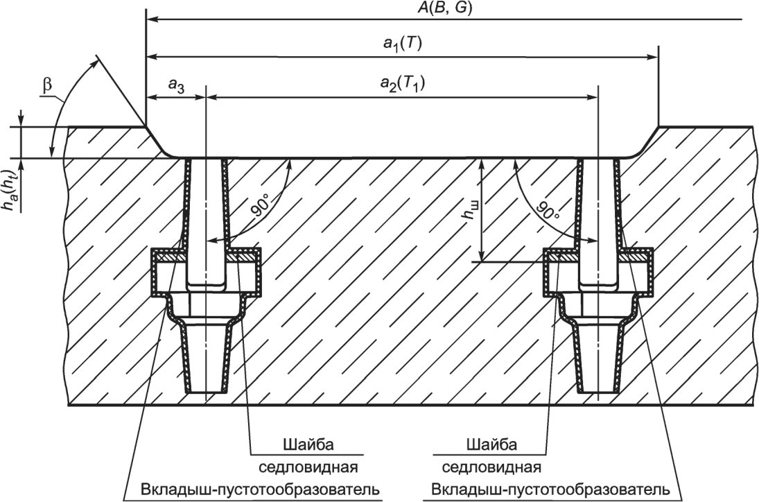 3.6 закладной элемент: Деталь, конструктивно изготовленная в зависимости от типа скрепления брусьев, замоноличенная в бетон и служащая для установки скрепления.
