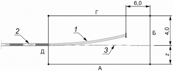 В.4 Деформируемое удерживающее боковое ограждение (2) барьерного типа (1), дорожное одностороннее (ДО), начальный участок (Н), уклон 1:10, изготовленное по СТО