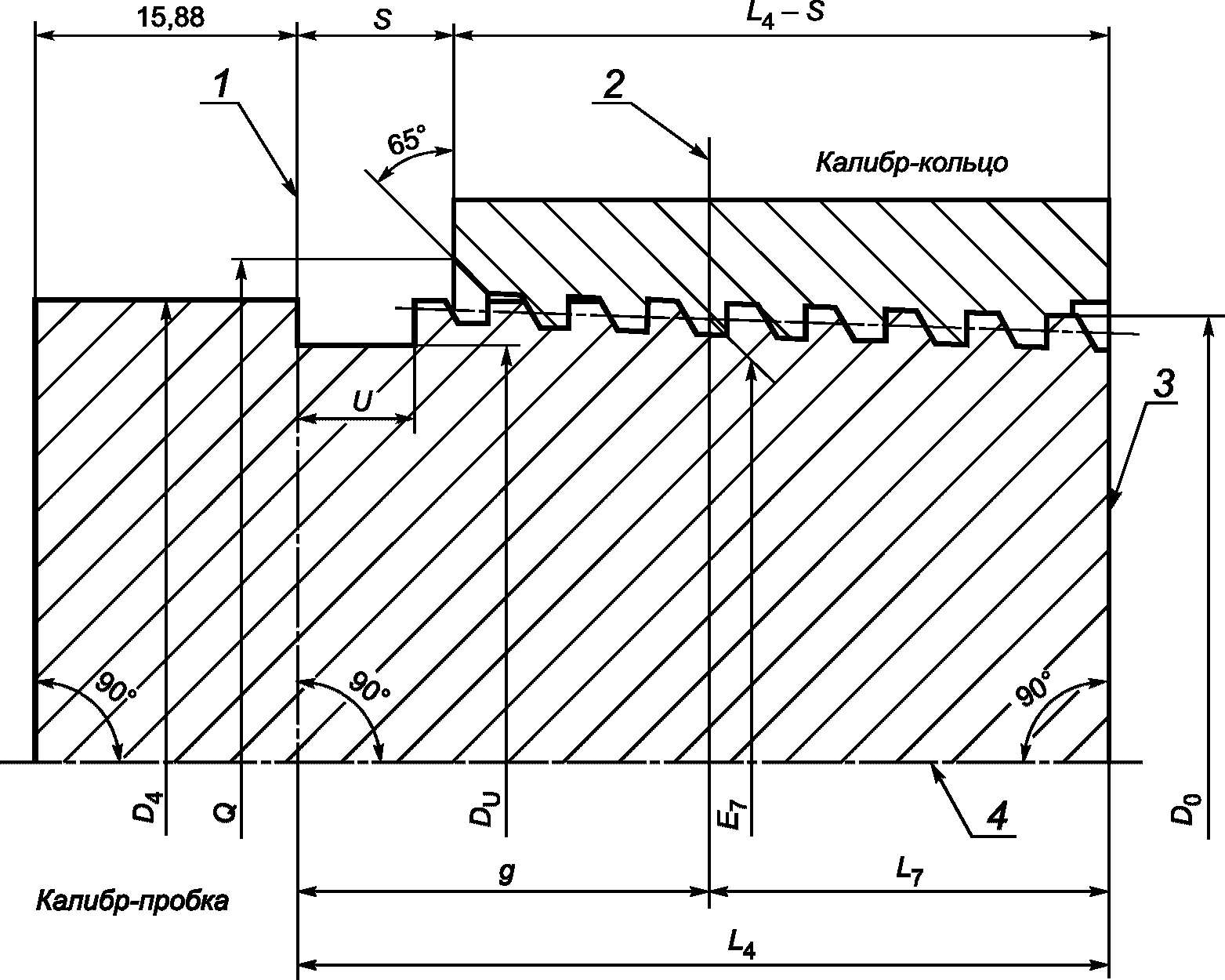 д) наружный диаметр фланца калибра-пробки D4 равен наружному диаметру резьбы трубы D4;