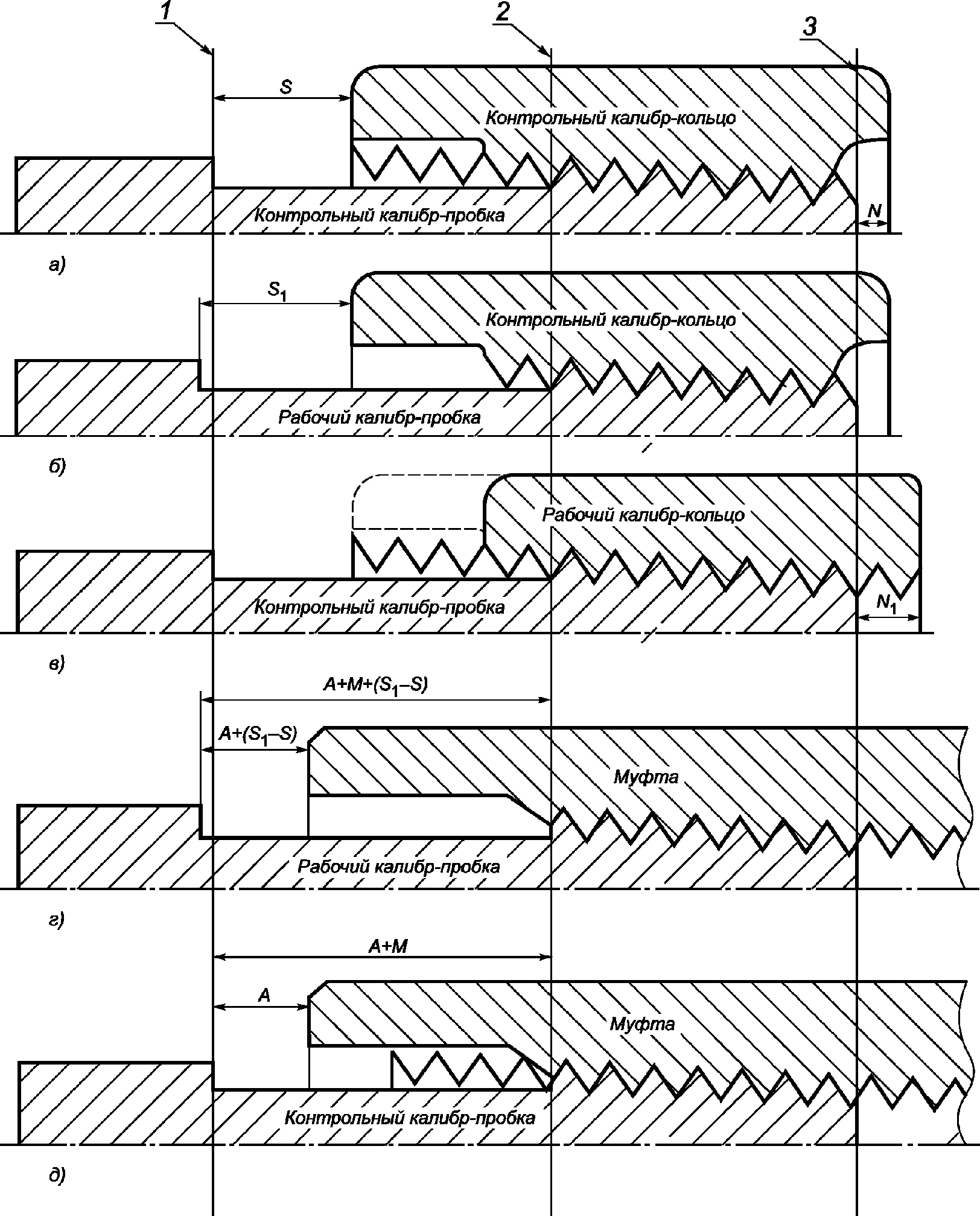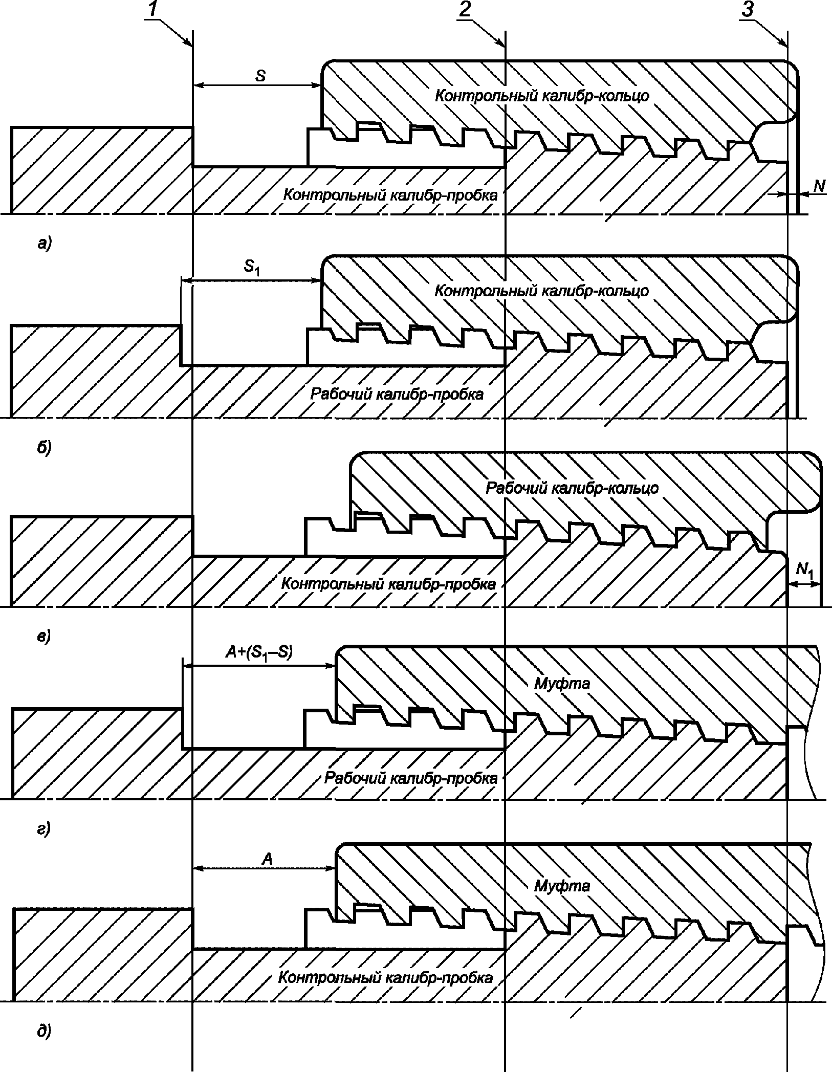 А.5 При свинчивании калибра-кольца и калибра-пробки с номинальными параметрами резьбы натяги N и N1 равны нулю.